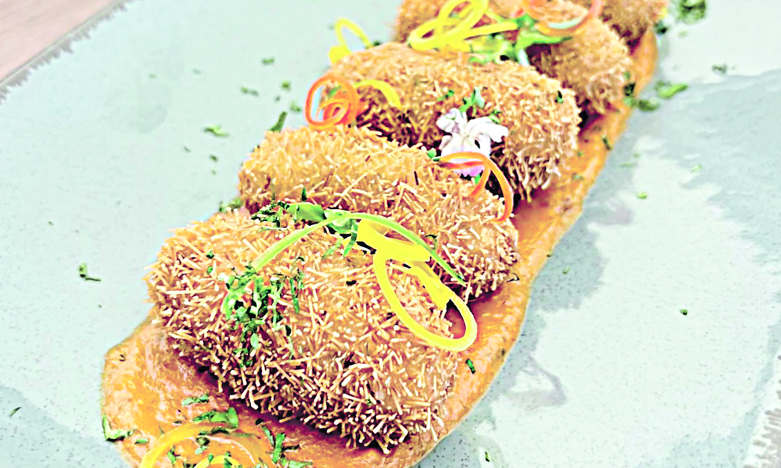Taro root cheese croquettes with roasted bell pepper sauce (Recipe: Chef Mohnish Kothare of Mazi)