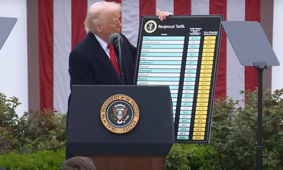 Washington: US President Donald Trump on Wednesday announced a 26 per cent tariff on Indian products and services as part of wider policy to impose sweeping 10 per cent tariffs on all countries to boost manufacturing in his country.