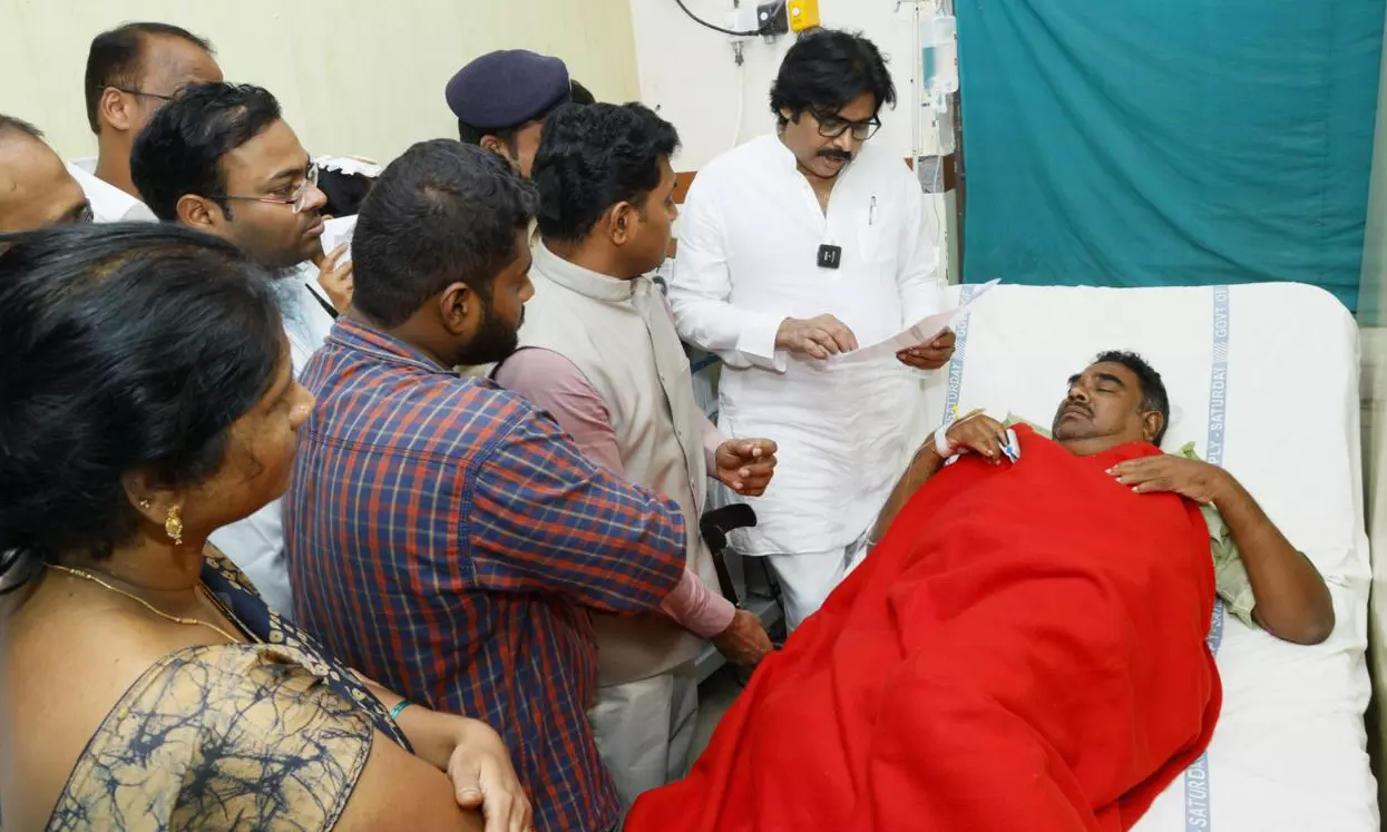 Pawan Kalyan visited the RIMS Hospital at Kadapa and met Galiveedu MPDO Jawahar Babu, who had allegedly been attacked by YSRC leader Sudarshan Reddy and his men on Friday.