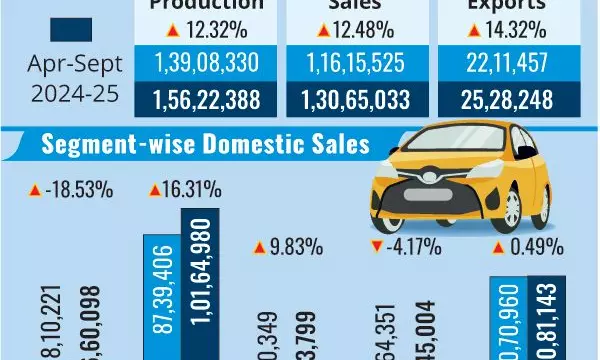 Pune: The passenger vehicle or PV sales, the barometer of the economy, in the April-September 2024 period or H1 FY25 were pegged at 2.08 million units, merely 0.5 per cent year-on-year growth, the Society of Indian Automobile Manufacturers or SIAM said on Monday.