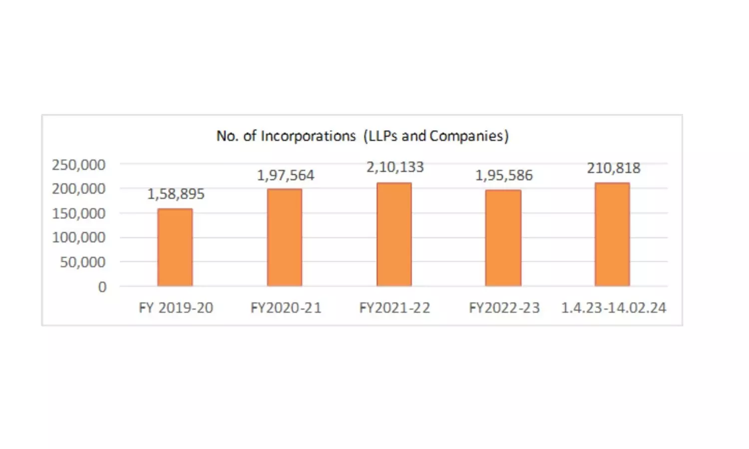 A total of 1,02,063 companies and LLPs were incorporated in FY 2013-14 and the count rose 92 per cent to 1,95,586 in FY 2022-23. “Incorporation of companies and LLPs till February 14 of the current financial year has been the highest as compared to any of the previous financial years,” the ministry said.