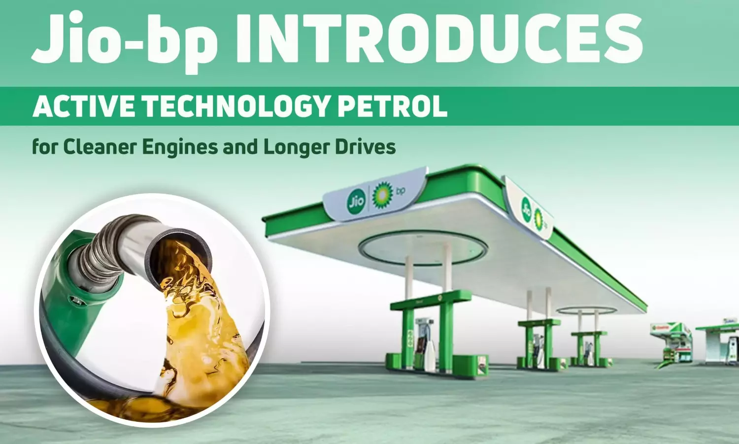 Petrol at Jio-bp with ACTIVE technology is designed to clean critical engine parts, deliver strong clean-up capability, restoring and protecting engine performance, and helping motorists go up to 100 km further every year compared to regular petrol. And all this comes at no extra cost.