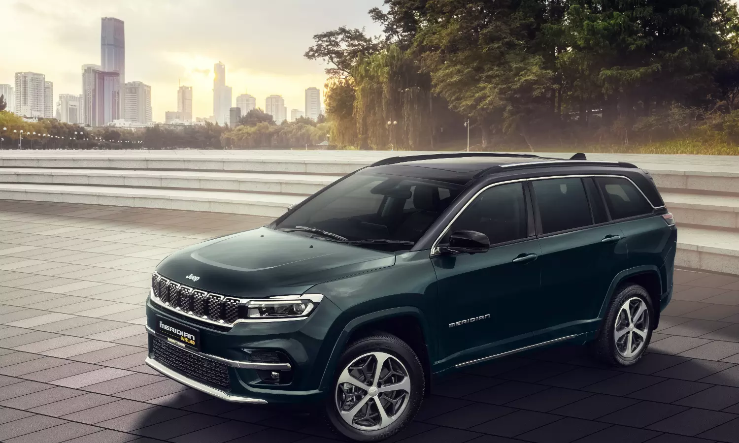 The exterior of the new Meridian features Jeep’s signature 7-slot grille, LED headlamps and two-tone alloy wheels.