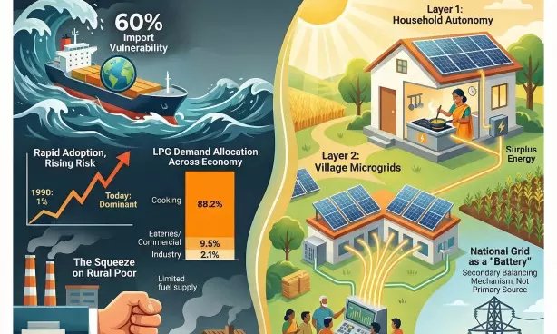 To protect households, especially in rural areas, from unpredictable geopolitics and to make villages energy independent, the government should encourage all rural households to harness multiple energy sources for cooking — LPG for deep frying, among others and stoves or induction plates, powered by rooftop solar panels, for other cooking needs.