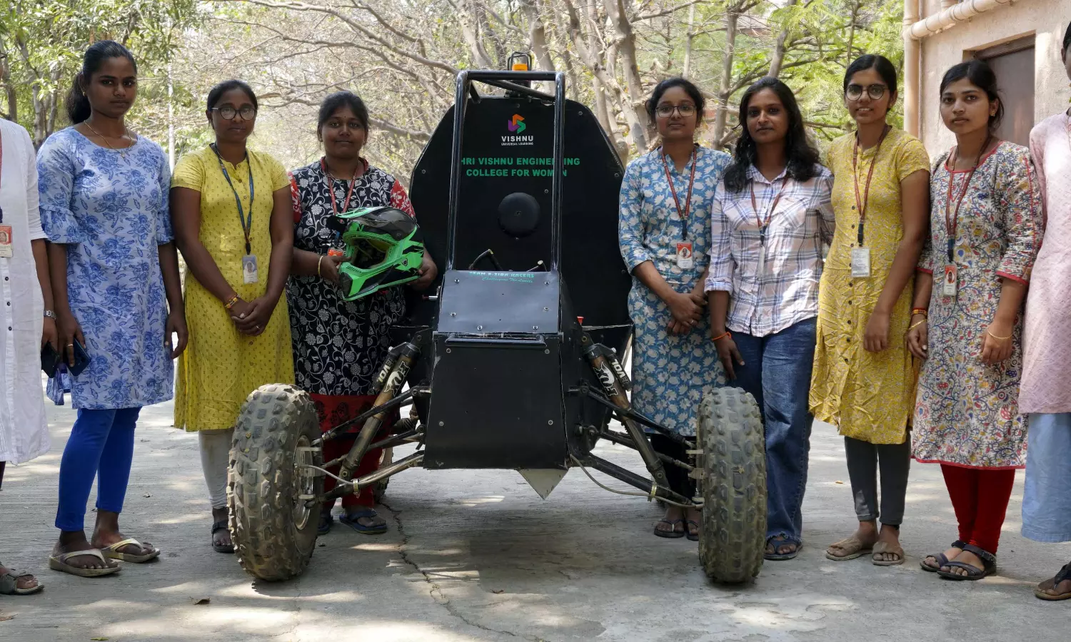 The girls were trying to lift their single-seater buggy to a side, trying to fix tyres, and testing the all-terrain electric buggy they designed. They are mechanical, electrical and automobile engineering students are from the BVRIT Narsapur campus in Medak District and Sri Vishnu Institute of Technology, Bhimavaram in Andhra Pradesh and from other instututions from across the country. While majority of girls opt the Computer Science stream, they chose to study core engineering streams which are perceived to be male-oriented.