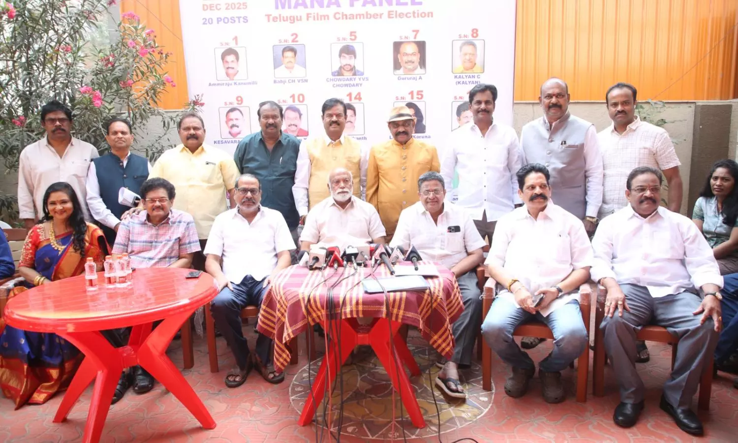 With the Telugu film industry gearing up for the Film Chamber of Commerce elections scheduled on December 28, members of Mana Panel held a press meet to outline their concerns about the current state of the industry and share their vision for the future.
