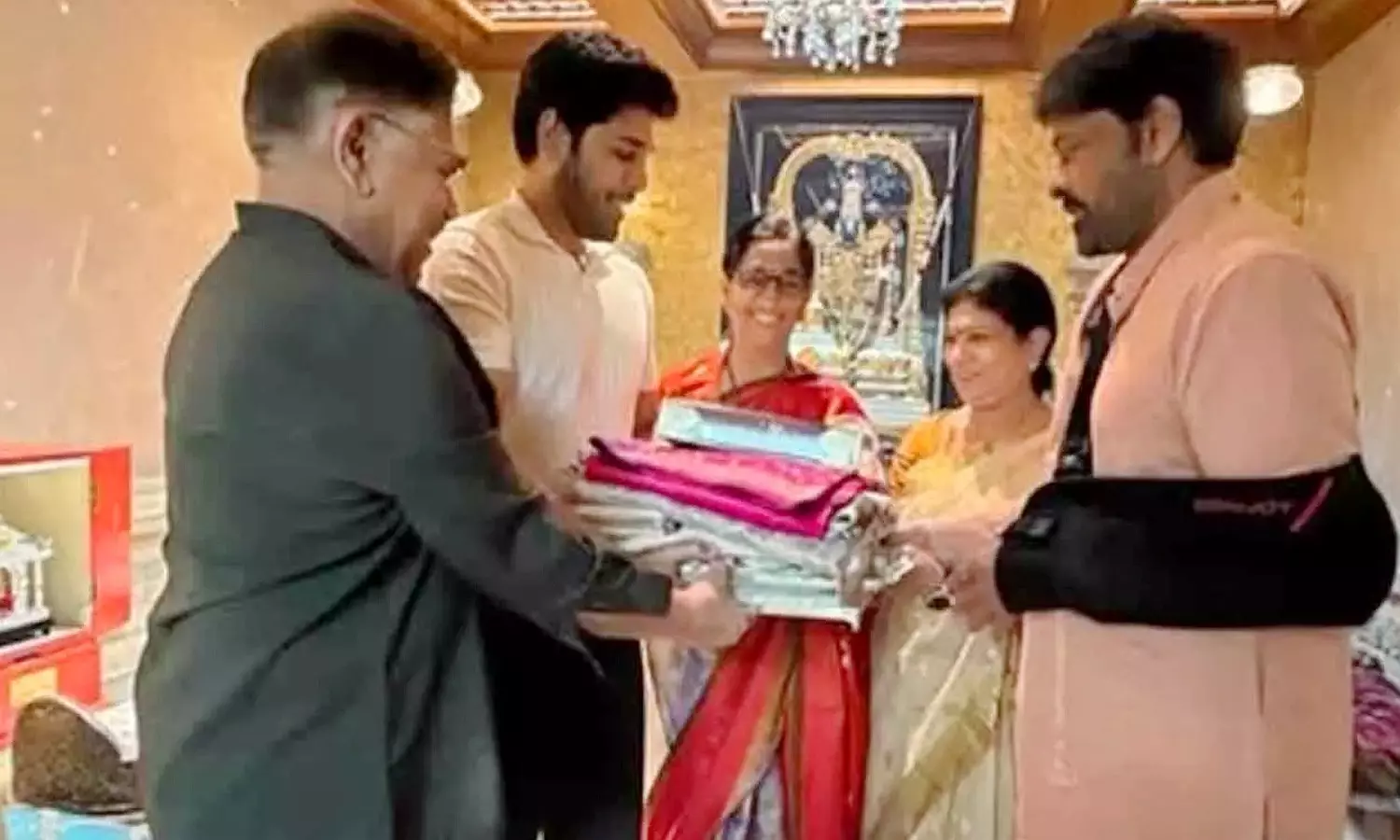 The Allu family is gearing up for another joyous celebration as actor Allu Sirish begins his wedding festivities. In keeping with Telugu tradition, the first wedding invitation was presented to the elders of the family — and the honour went to Megastar Chiranjeevi.