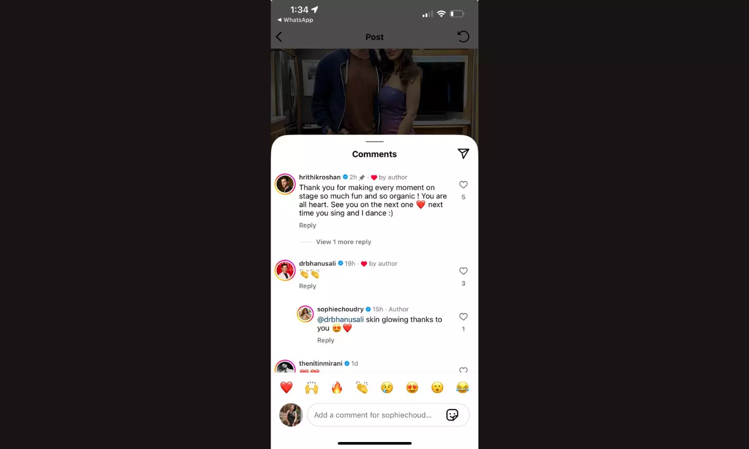 Hrithik’s reply was equally thoughtful, “Thank you for making every moment on stage so much fun and so organic! You are all heart. See you on the next one , next time you sing and I dance.”