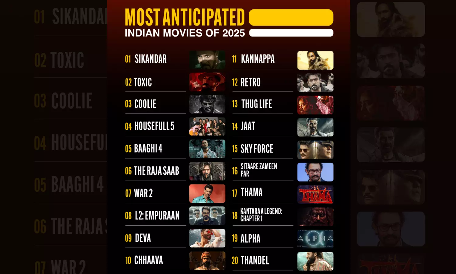 Among the Indian movies with planned releases in 2025, these titles were consistently the most popular with IMDb customers, as determined by the actual page views of the more than 250 million monthly visitors to IMDb worldwide.
