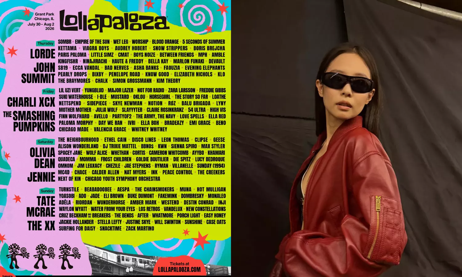 Lollapalooza 2026 will host 170+ artists across various genres, including pop, EDM, rock, indie, hip-hop, and K-pop. Alongside Jennie, headliners include names like Tate McRae, The Smashing Pumpkins, and The xx.