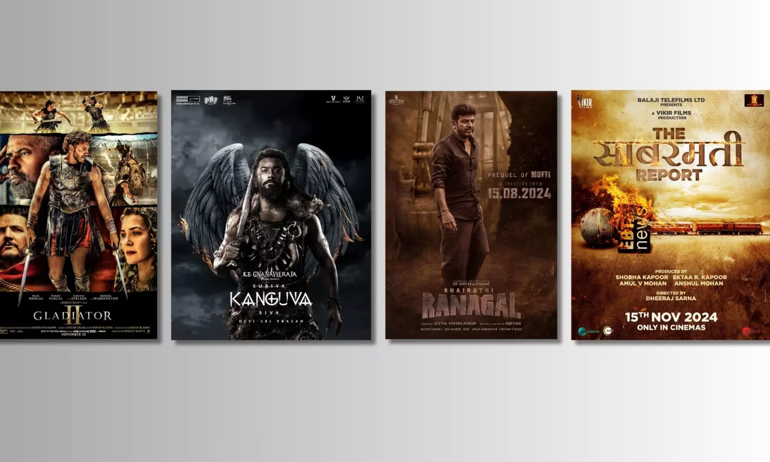 This week’s movie lineup promises epic stories, Mind-blowing action, gripping drama, and heartwarming re-releases. Gladiator II returns to ancient Rome, where loyalty and vengeance drive the fight for justice. Kanguva blends history and present-day action as a warrior’s quest unfolds across centuries. Bhairathi Ranagal dives into the rise of a formidable character in Kannada cinema, packed with raw power and high stakes. The Sabarmati Report brings a journalist’s search for truth to the forefront, revisiting a pivotal moment in India’s history. Additionally, watch handpicked re-releases like Kal Ho Na Ho, Pardes and Veer Zaara in Shah Rukh Khan’s birthday month and relive the magic and charm of the Badshaah of Bollywood. Don’t miss these captivating films that promise unforgettable cinematic experiences.