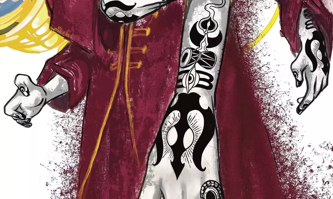 Executed by mehendi artist Sonam Istry, the design was unveiled during Rishab’s Mumbai performance. The collaboration also extends to an original artwork by Santanu, reimagining the musician through a mythological and modern lens.