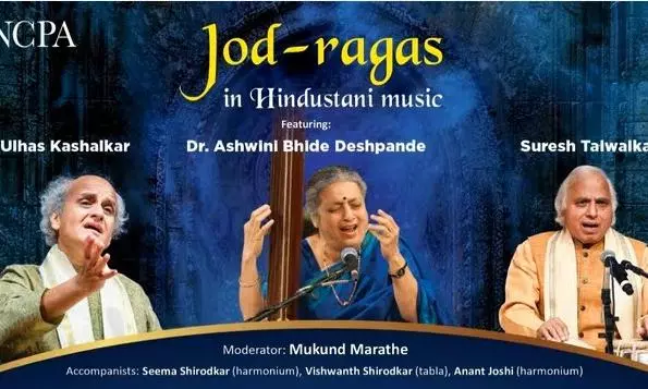 The National Centre for the Performing Arts presents a rare exploration of jod-ragas, a fascinating concept in Hindustani music that combines two distinct ragas with distinct personalities. This special evening will feature three distinguished artistes: renowned vocalist Ulhas Kashalkar, celebrated tabla maestro Suresh Talwalkar, and accomplished vocalist Dr. Ashwini Bhide Deshpande, with the session moderated by Mukund Marathe. The evening will begin with a discussion on jod-ragas featuring Kashalkar, Talwalkar and Dr. Bhide Deshpande, moderated by Marathe. This will be followed by a performance of jod-ragas by Dr. Bhide Deshpande, concluding with Kashalkar's performance of select jod-ragas accompanied by Talwalkar on tabla.
