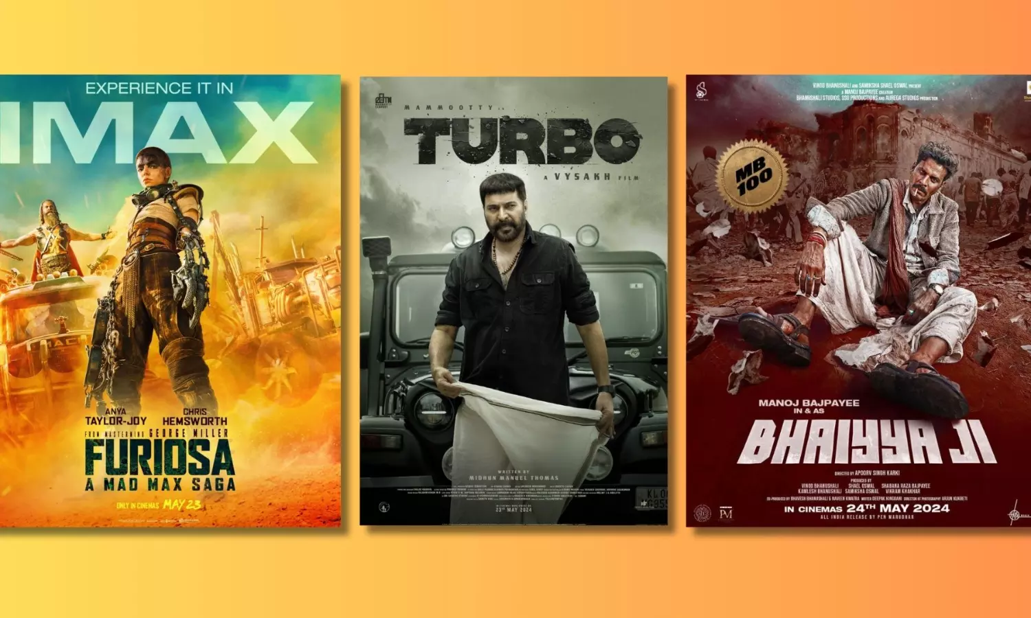 This week, gear up for an exhilarating cinematic journey as highly anticipated films hit the big screens, offering a thrilling blend of action, drama, and adventure. Experience the post-apocalyptic landscapes in Furiosa: A Mad Max Saga, the adrenaline-pumping ride of the Malayalam mass entertainer Turbo, the intense quest for justice in Bhaiyya Ji, and the delightful escapades at the Summer Film Festival by PVR INOX.