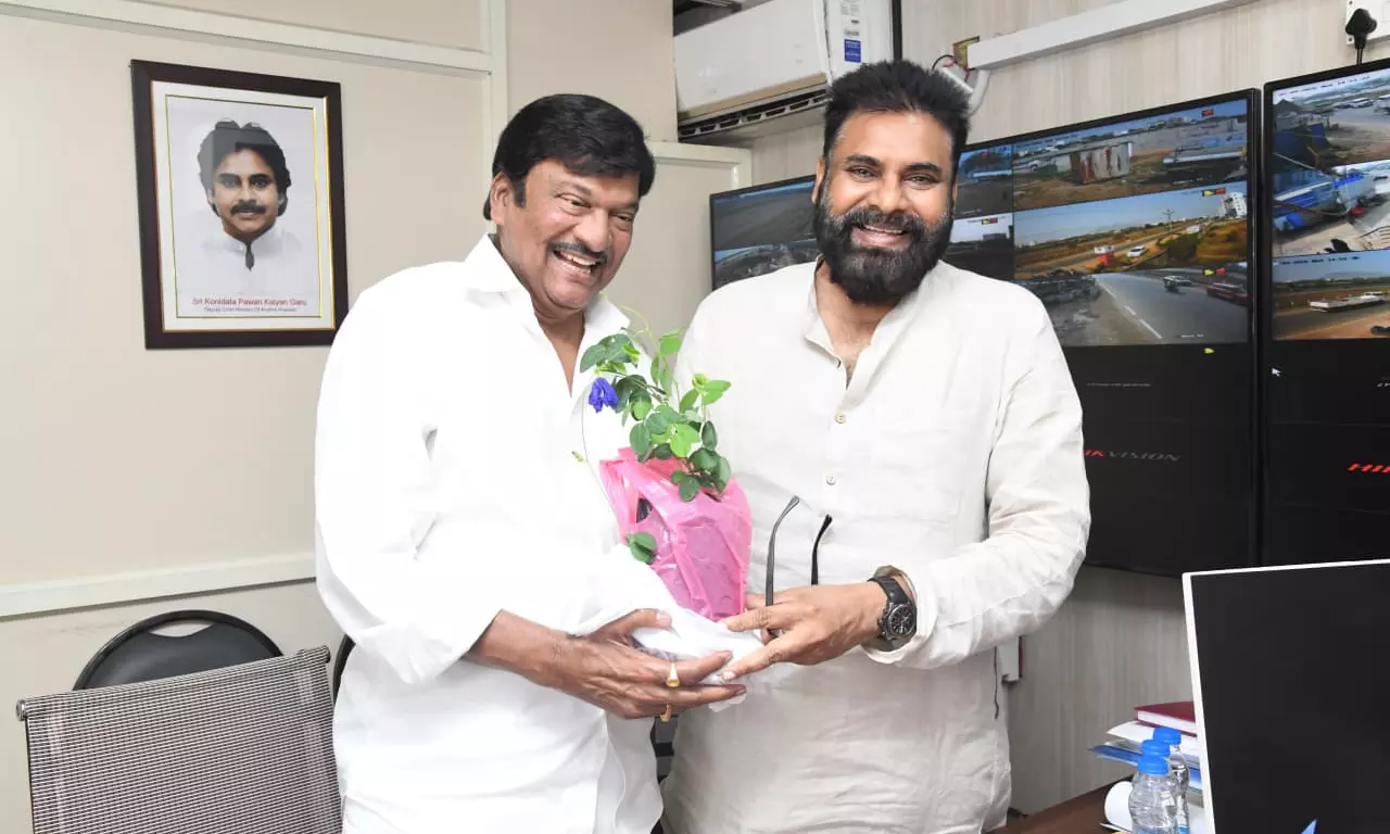 Veteran actor Dr Rajendra Prasad, who was recently conferred with the Padma Shri, paid a courtesy visit to Andhra Pradesh Deputy Chief Minister Pawan Kalyan on Wednesday. During the meeting, Rajendra Prasad expressed his heartfelt gratitude to the Deputy CM for playing a key role in recommending his name for the prestigious honour and for standing by him.