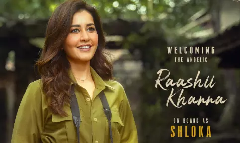 Raashi Khanna’s character name has been revealed as Shloka. In the released poster, she is seen flashing a big smile, holding a camera, and looking cute. The film is in the last leg of its shooting, according to reports.