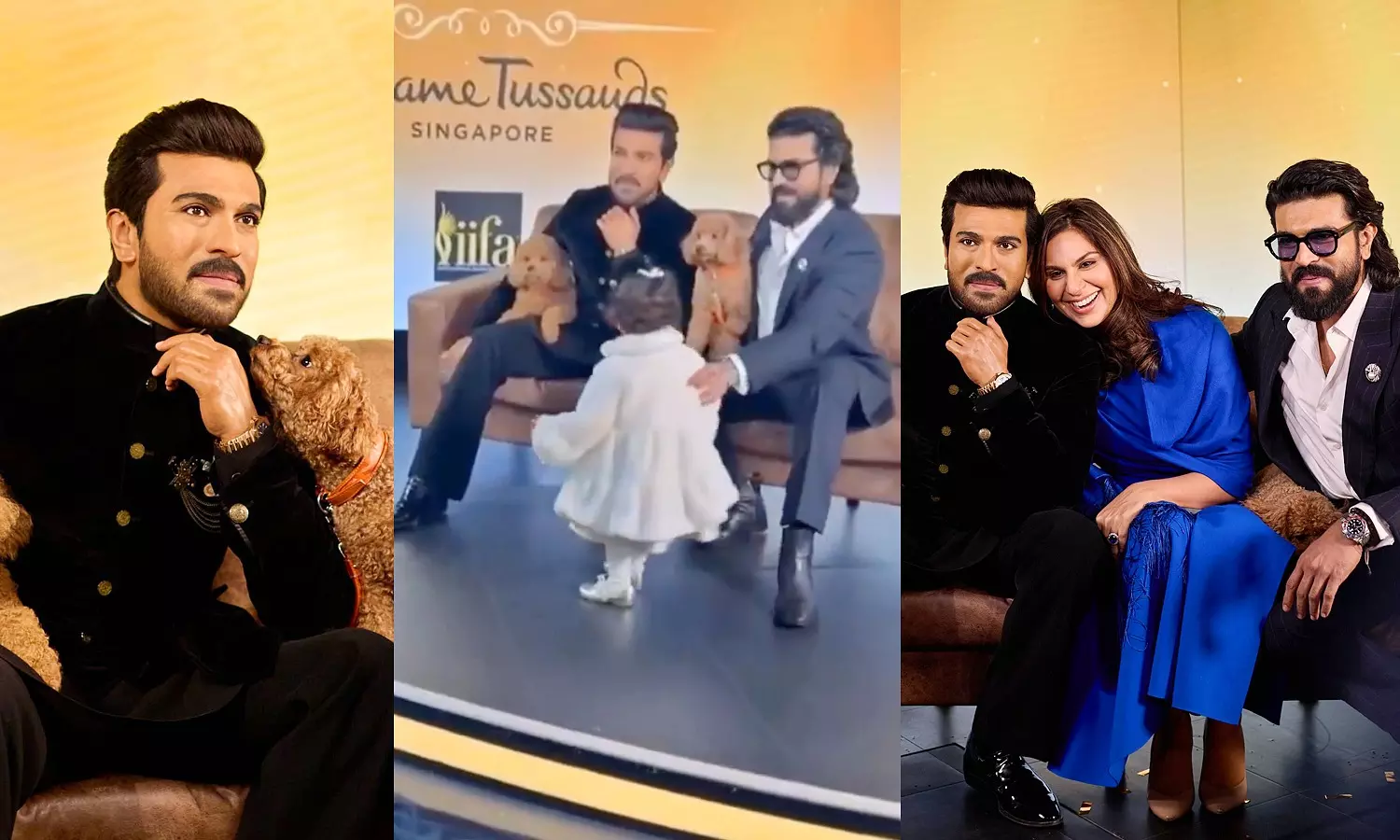 Upasana shared a heartwarming video from the event where Charan is seen posing with his wax counterpart.