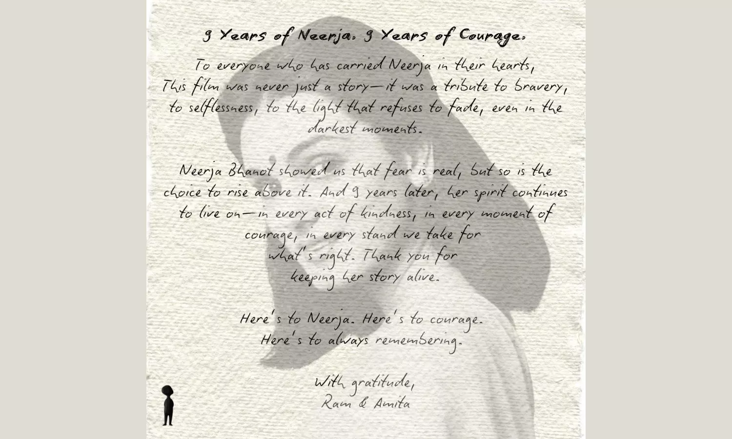 Reflecting on this milestone, co-producer Amita Madhvani shares, “Neerja, the national award film, completes 9 years today - “Neerja” still resonates the power of self-bravery to save lives, to rise above your call of duty—to be Nidaar #Sonam Kapoor Ahuja to portraying this truth with vulnerability and honesty- Ram Madhvani’s search of truth to create a reality in the shoot to honour the lives lost, the emotions of the Neerja family—on screen and in reality while telling a heart wrenching story of strength within.” She further adds, “As co-producers RMF we believe in the search for truth in every story we tell and honour every protection needed to preserve the integrity of the creator. Neerja set the path for this quest as we walk towards our next series, “The Waking of a Nation”.