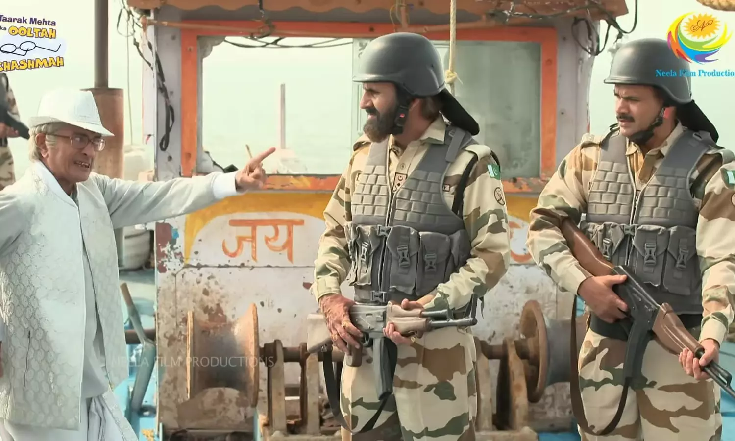 Bapuji, stranded and desperate, began weaving a convincing story to the Pakistani Coastal Guards, sharing accurate details about a village in Pakistan. His clever plan seemed to work as the guards started to believe him. Meanwhile, in Gokuldham, the residents united in their prayers and brainstormed ways to rescue him.