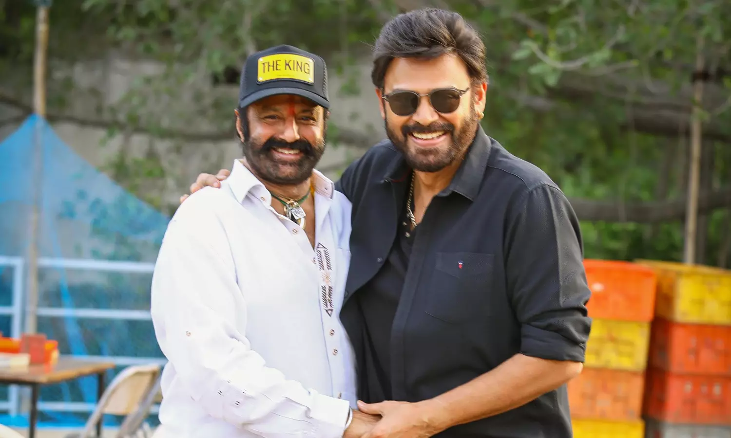 It is rare in Tollywood. Nadamuri Balakrishna went to the sets of Venkatesh's upcoming film with director Anil Ravipudi in the city outskirts. Balakrishna was welcomed by Anil Ravipudi who he worked with in ‘Bhagavanth Kesari’ and later Venatesh joined them for a brief chat. “It was a delight to witness the dynamic camaraderie between Balakrishna, Venkatesh on-location. The entire team was thrilled to have such an esteemed visitor cheering them on While Balakrishna and Venkatesh have been good friends since ages,” says a statement