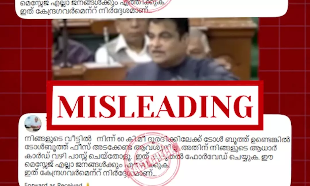 Claim: A viral message on social media claims that Union Minister Nitin Gadkari announced in Parliament that residents living within a 60 km radius of toll booths are exempted from paying toll fees.