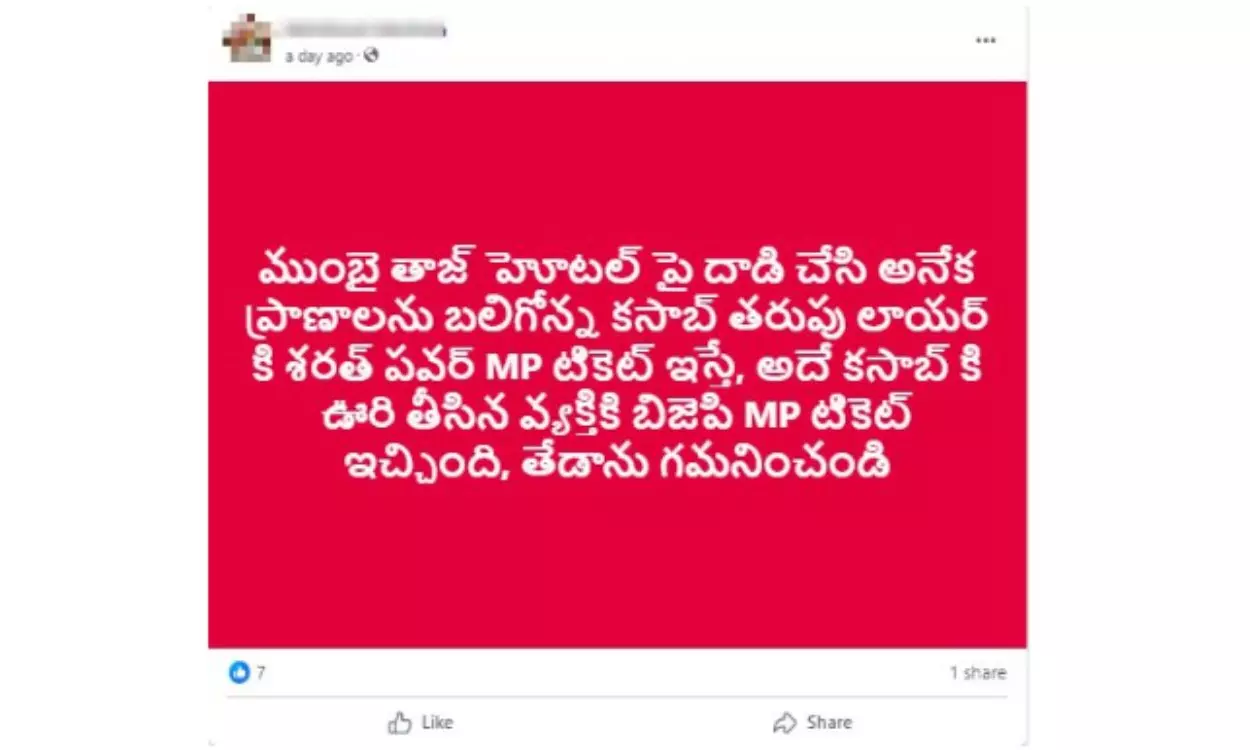 Fact Check: Misleading claim about Sharad Pawar giving ticket to Kasab's Advocate