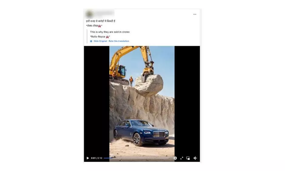 A video (here, here and here) showing an excavator dropping a massive boulder onto a Rolls-Royce car, where the boulder shatters into small pieces without damaging the vehicle, is being shared on social media as a real incident. The post claims that the video demonstrates the car’s build quality. Let’s verify the authenticity of the video.