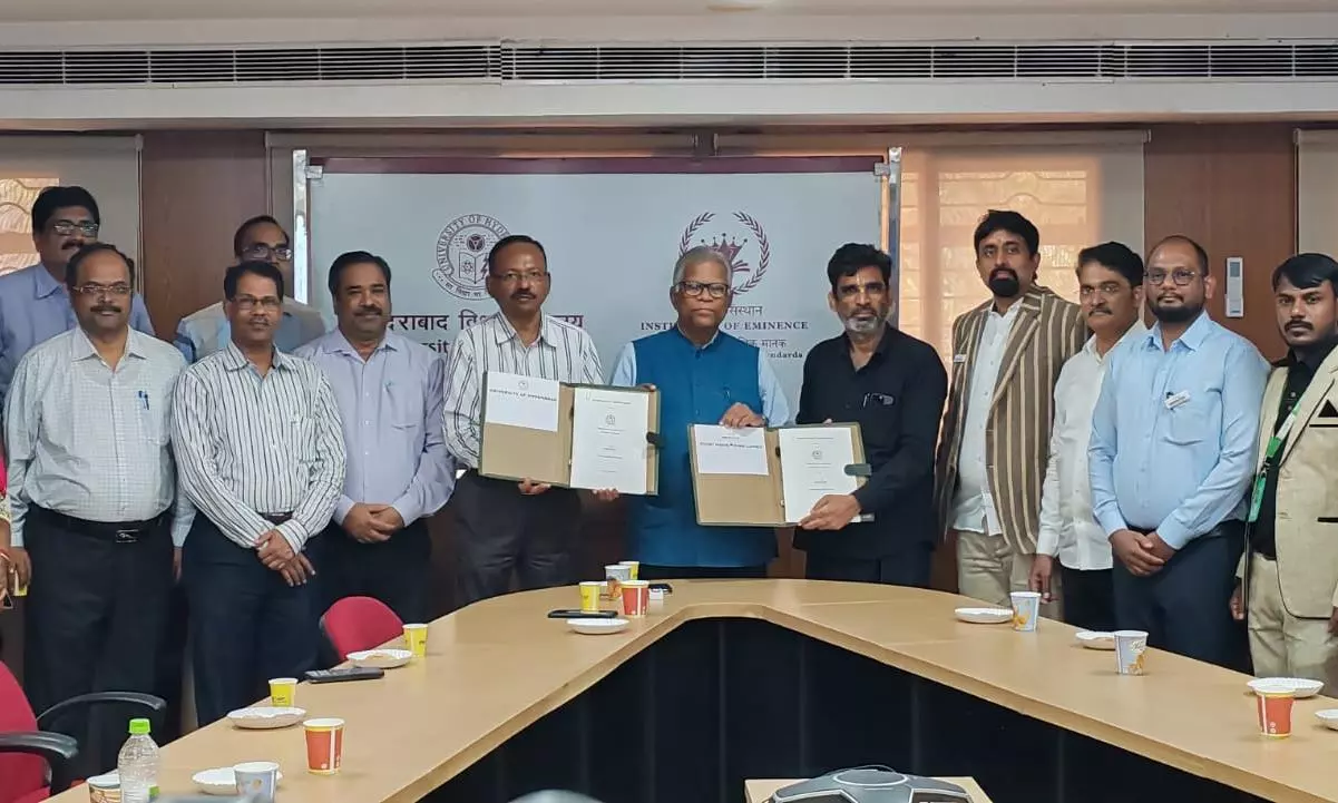 Hyderabad: Biofactor, a leading agricultural biotechnology company, has signed an MoU with the School of Engineering Sciences & Technology, University of Hyderabad (UoH), to develop nanotechnology-driven solutions for sustainable farming. The MoU was signed by Dr. Devesh Nigam, Registrar of UoH and Dr. Laxmi Narayana Reddy, CEO of Biofactor in the presence of Prof. B J Rao, Vice Chancellor, UoH; Prof. Samrat Sabat, Director, R&D at UoH and faculty members.
