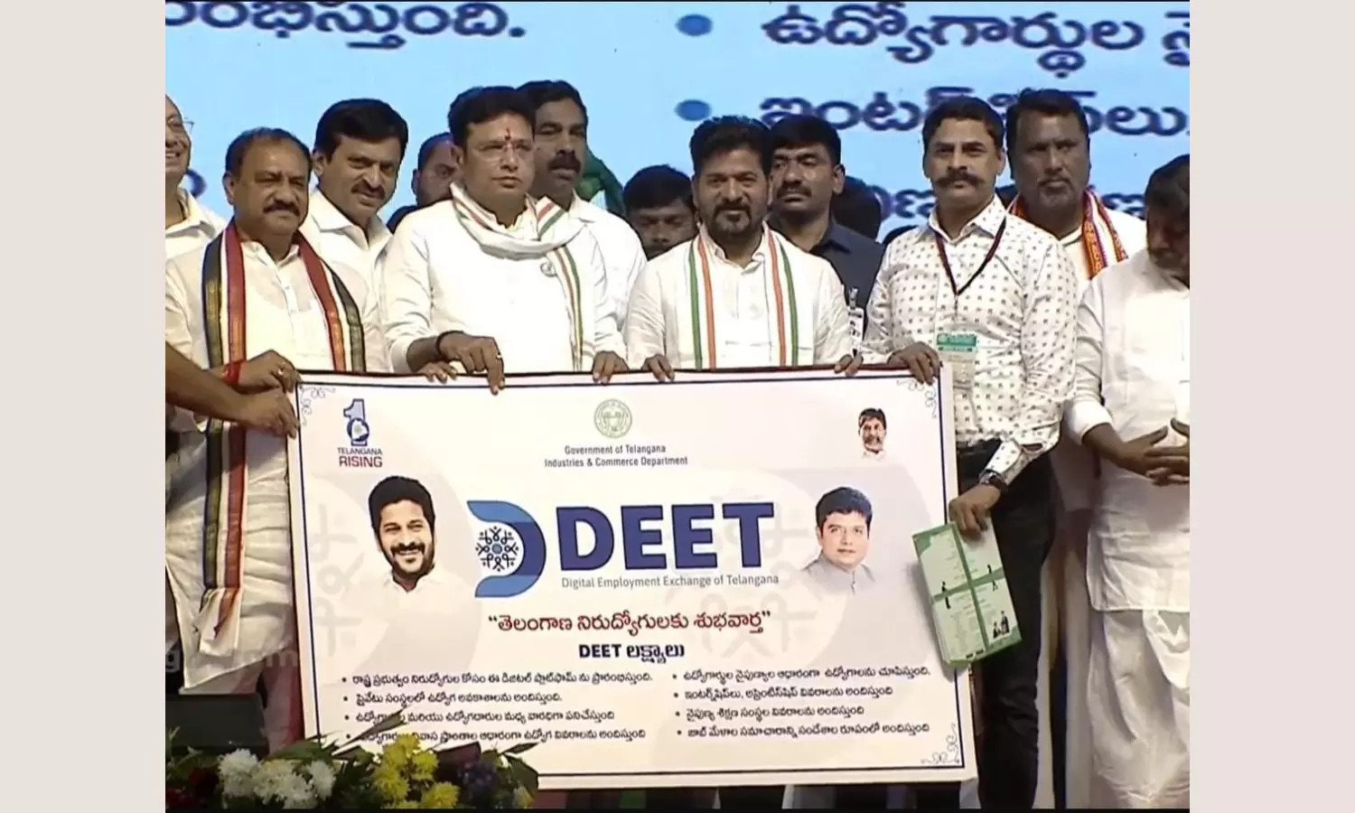 During a special event in Peddapalli this week, the Honourable Chief Minister of Telangana, Sri Anumula Revanth Reddy, and IT Minister Shri D. Sridhar Babu unveiled the new DEET logo, symbolizing the platform’s remarkable transformation. This event marked a milestone in DEET’s journey, showcasing its role in bridging employment gaps across Telangana by providing job opportunities to citizens from all corners of the state.