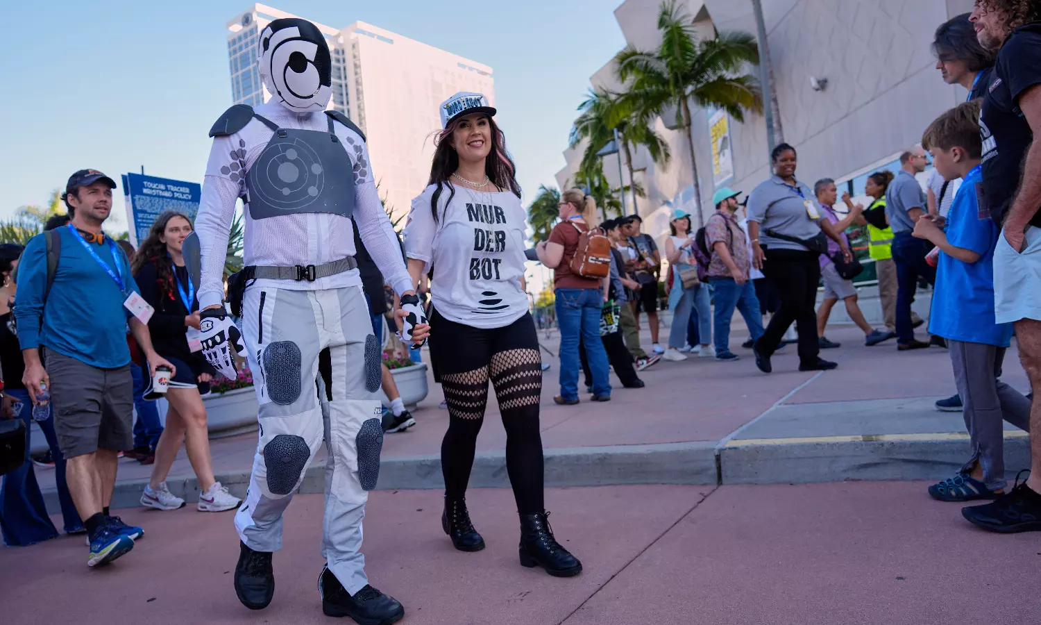 Thousands of fans got a sneak peek at the convention's 460,000 square foot (42,700 square meter) exhibitor section, which features exclusive merchandise, comic book art and exhibits from brands like Star Wars, Lego, Nickelodeon, Paramount and more.