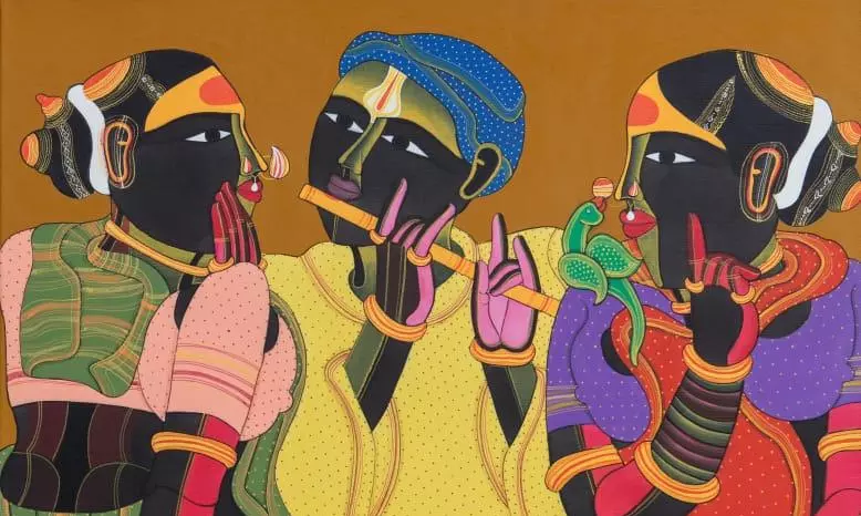 Ravinder Reddy, renowned for his iconic sculptures of women, presents works that explore the symbolism of objects and imagery. GR Iranna’s intricate paintings reflect on identity and the passage of time, while Jagannath Panda’s thought-provoking installations challenge viewers to reconsider their perceptions of reality and existence.
