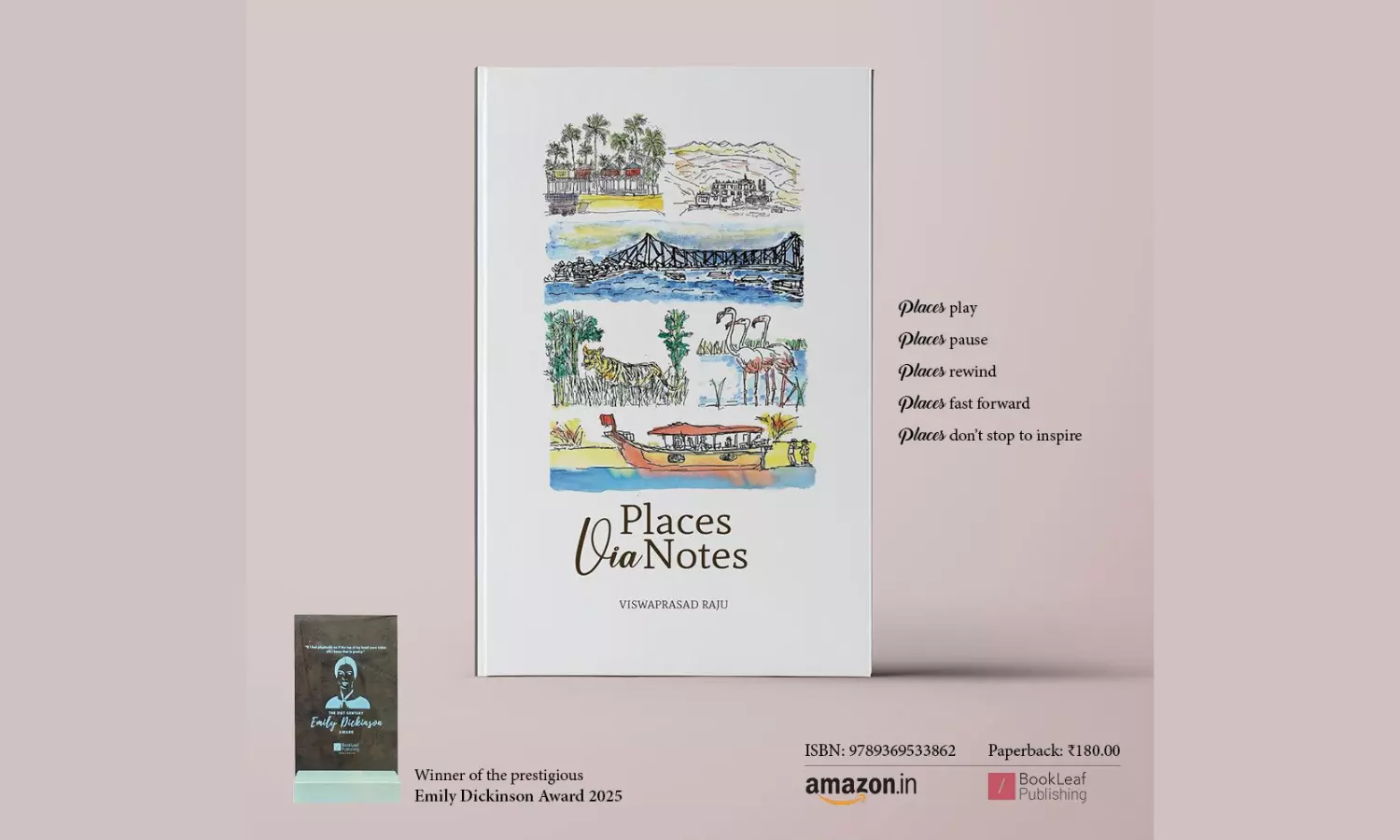 The book is about places via notes. According to Mr. Viswaprasad Raju, "Places play, places pause, places rewind, places fast forward, and, most importantly, places don’t stop to inspire." No two places are alike; befittingly, all the places featured in the book are written in a unique narrative style. You can call it a poem, a post, a note, or a dialogue; the idea was to look at each place from a new perspective, a new lens. While his first book, Via Pen & Ink, was about sketches from the 10 countries the writer has traveled to, over 10 years; his third book is about notes from 21 places put together in 21 days. From 'a conversation between two poets' at Galle Literary Festival in Sri Lanka to 'tracking a tiger' in Bandhavgarh and 'two cities finding common ground' in the Hyderabad & London chapter to 'a date with a Banyan Tree' in Pillalamarri, the places speak to the readers in a deeply engaging, lyrical, and lucid manner.