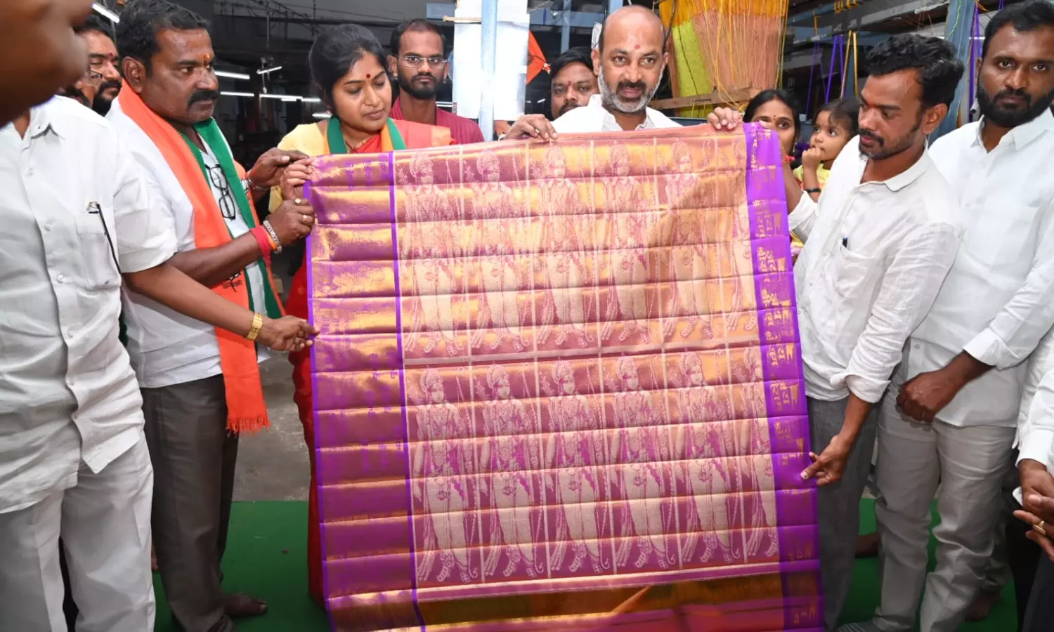 BJP general secretary Bandi Sanjay Kumar, accompanied by the party’s official spokesperson Rani Rudrama Devi, visited Hari Prasad’s house on Thursday and was saw by sari whose design features instances from Lord Rama’ life.
