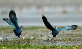 Guwahati : Various species of migratory birds arrived on Wednesday at a wetland in the Pobitora Wildlife Sanctuary on the outskirts of Guwahati, India.