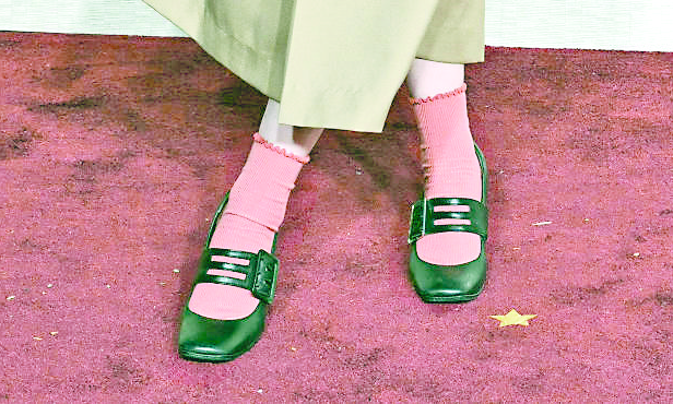 After bringing back the millennial side part at the GLAAD Media Awards, Jennifer Lawrence was seen wandering through New York wearing a pair of ‘millennial socks’. Lawrence paired them with The Row’s Lucca moccasins and a school-girl miniskirt, along with a leopard print Mehry Mu bag and a Tiffany & Co. link station necklace.