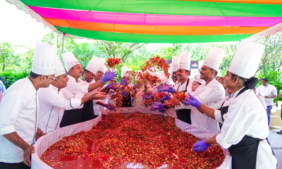 Novotel Hyderabad Airport kickstarted the festive season on Sunday with its annual Cake Mixing and Grape Stomping celebration, highlighted by the unveiling of a 25-foot-long cake displayed inside the Food Exchange.