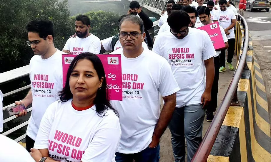 Hyderabad: In observance of World Sepsis Day, the Indian Society of Critical Care Medicine (ISCCM) – Hyderabad Chapter organized a public awareness walk at Durgam Cheruvu Cable Bridge, Hyderabad, bringing together doctors, nurses, medical students, healthcare workers, and members of the public to raise awareness about one of the world’s most overlooked medical emergencies – sepsis.
