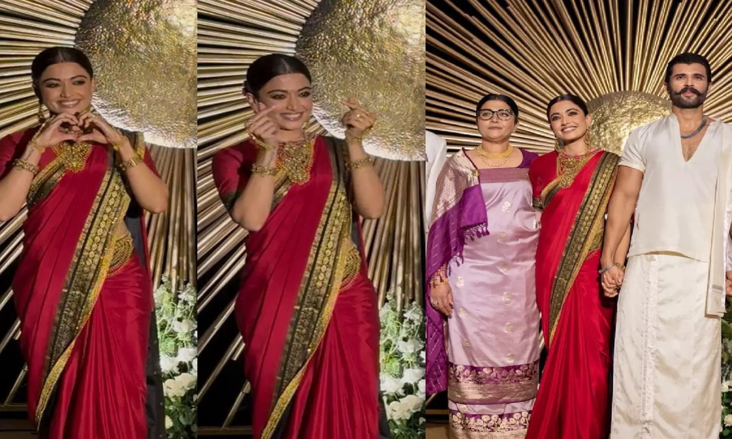 Much has been spoken, written and read about Rashmika Mandanna’s stunning look in a red Mysore silk saree with a black-gold border for her wedding reception at Hyderabad recently. While she wore a red sari, her husband Vijay Deverakonda wore an ivory white veshti with silver zari border, as they both complemented each other while maintaining distinct South Indian traditional styles.