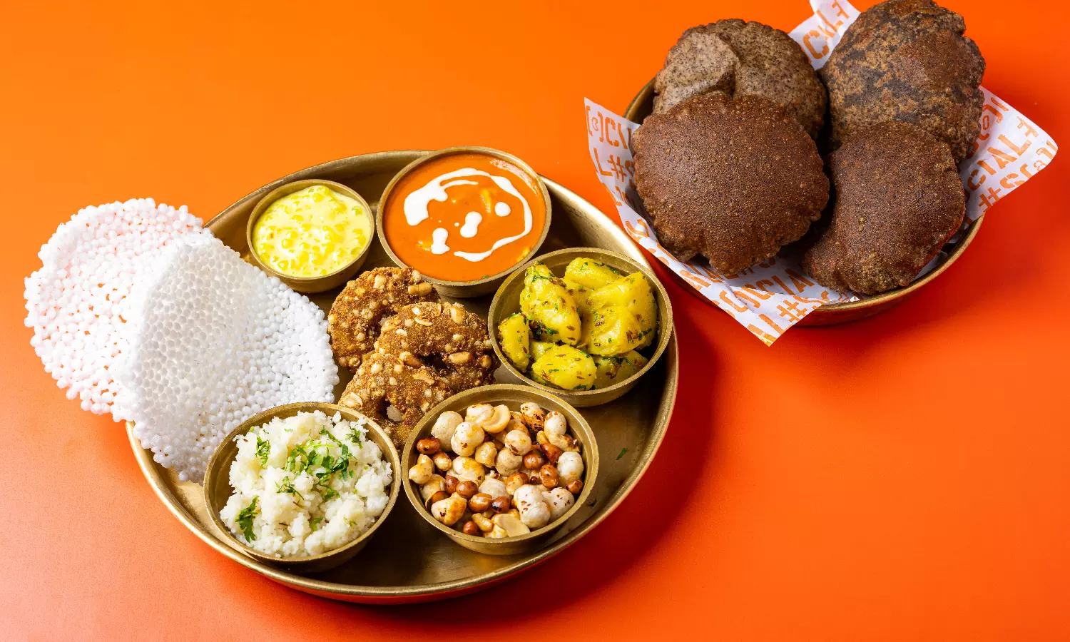 Crafted to celebrate the joy of the season, the thali features a wholesome spread of vrat classics such as aloo jeera, paneer in tomato gravy, makhana, samak rice, falahari poori, sabudana vada, sabudana kheer, and papad.