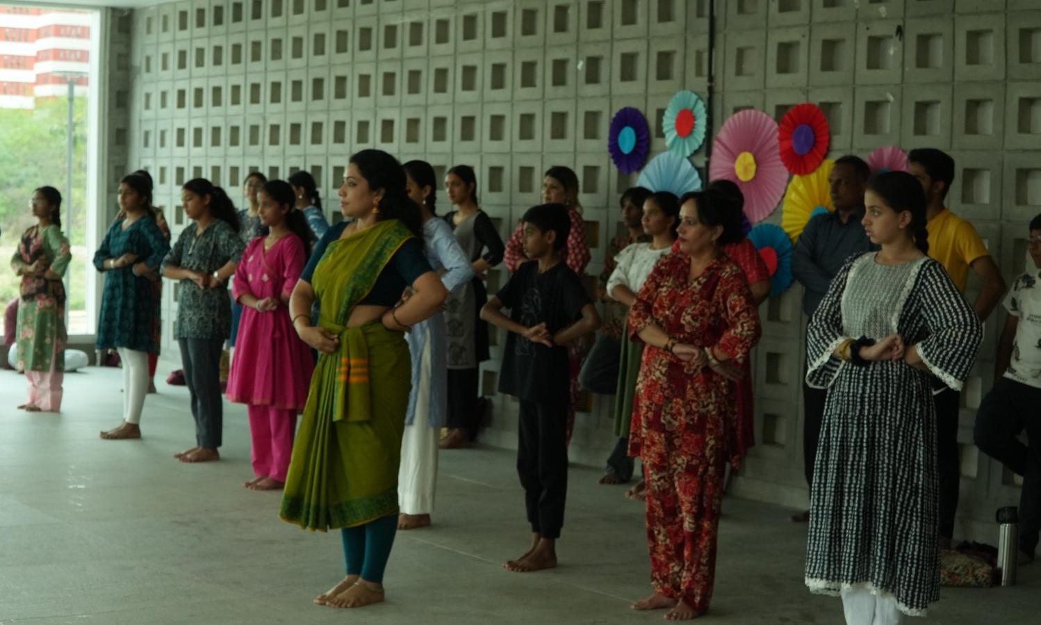 Elsewhere, students also trained under living masters of Bharatanatyam, Odissi, Kathak, Kathakali, Kuchipudi, Sattriya, and Manipuri. Folk art sessions featured Madhubani by Shanti Devi, Cherial painting by D. Vaikuntam, Gond by Bhajju Shyam, and Kalamkari by Niranjan Jonnalagadda, among others.