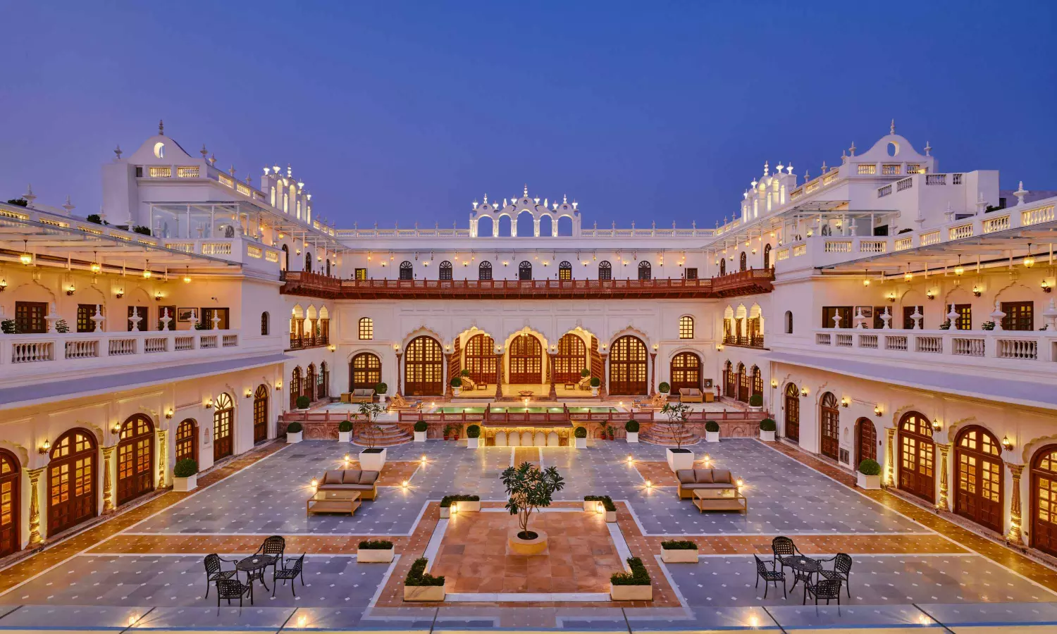 At Sadar Manzil, food takes centre stage with a vegetarian culinary philosophy. Guests can enjoy gourmet, meat-free dishes with global influences at Diwan-I-Khas, an all-day dining venue with frescoed ceilings and shimmering chandeliers. The alfresco Charbagh Courtyard offers local and international vegetarian delicacies for lunch and dinner. For a refined experience, guests can try the wine cellar, Maikhana, or unwind at the elegant Madhushala Bar.