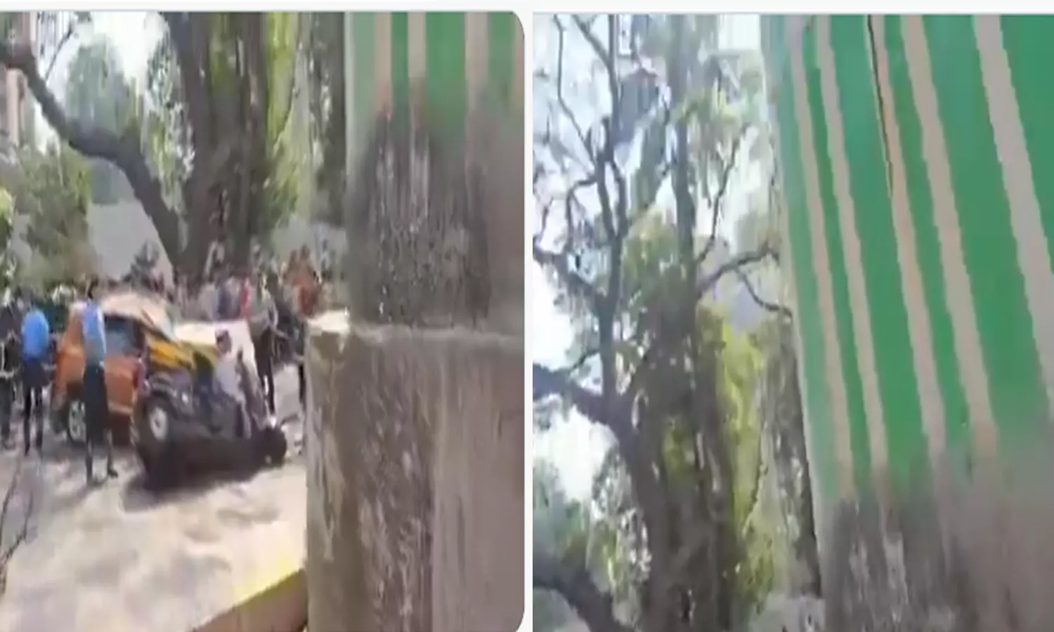 A cement slab of the pillar collapsed and fell on an autorickshaw below, completely smashing the three-wheeler.