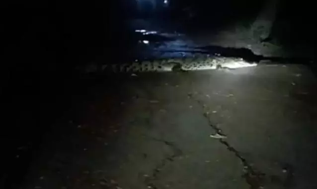 Eyewitnesses said the reptile was spotted sprawled across the main road in Ward No. 7, blocking passage as it stretched almost the entire width of the lane. Alarmed villagers initially mistook the dark shape for a fallen log until torchlight revealed the massive crocodile.
