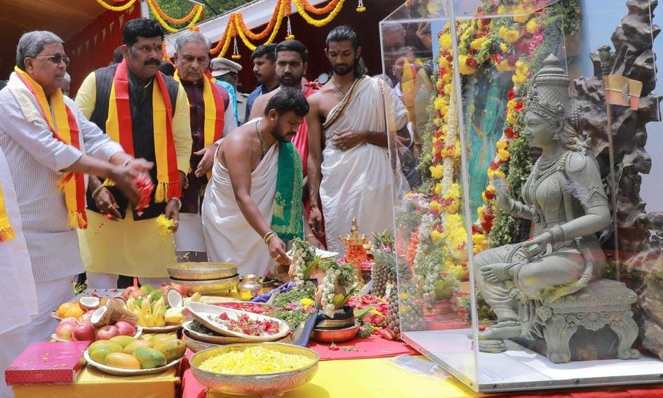 The statue of Bhuvaneshwari at Vidhana Soudha is in commemoration of 50 years of renaming of Karnataka from its erstwhile name Mysore State. Siddaramaiah said there is no shortage of funds for the statue work and asked the sculptor to ready the statue before November 1 this year when the State celebrates Kannada Rajyotsava (formation day).