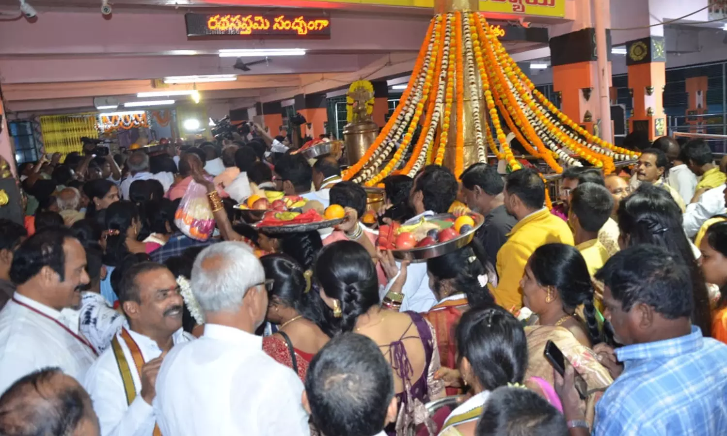 Devotees lined up in queues to catch a glimpse of the Sun God’s “Nijaroopam” that is possible only once in a year on Ratha Sapthami. Worshippers from all over AP and Odisha thronged the temple, which witnessed huge crowds.