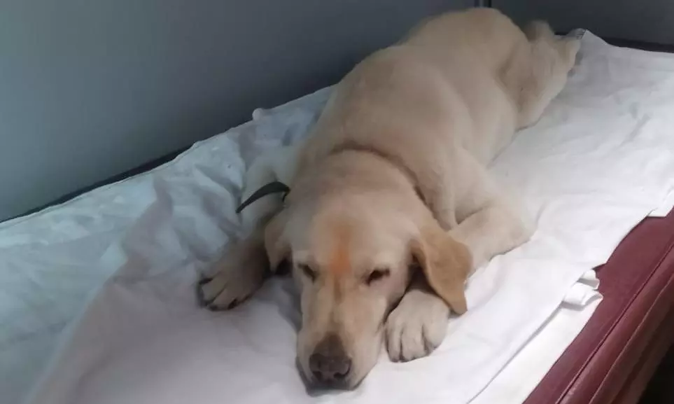 The pictures of Meru (Labrador Retriever) in the train have gone viral on social media.