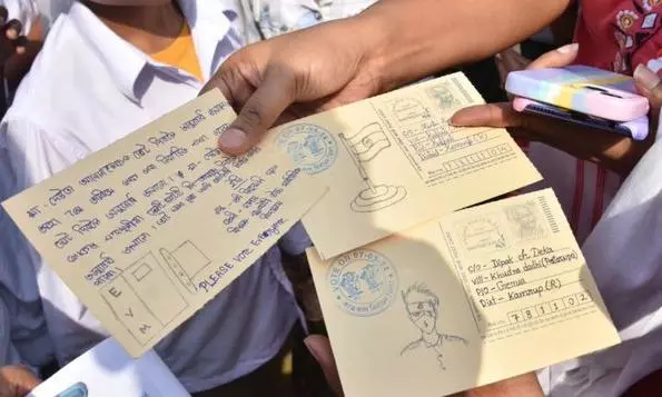 Guwahati: The Kamrup election district officials have embarked upon an innovative campaign by asking more than one lakh students to write a postcard to their parents to motivate them to exercise their franchise in the ensuing Lok Sabha elections.