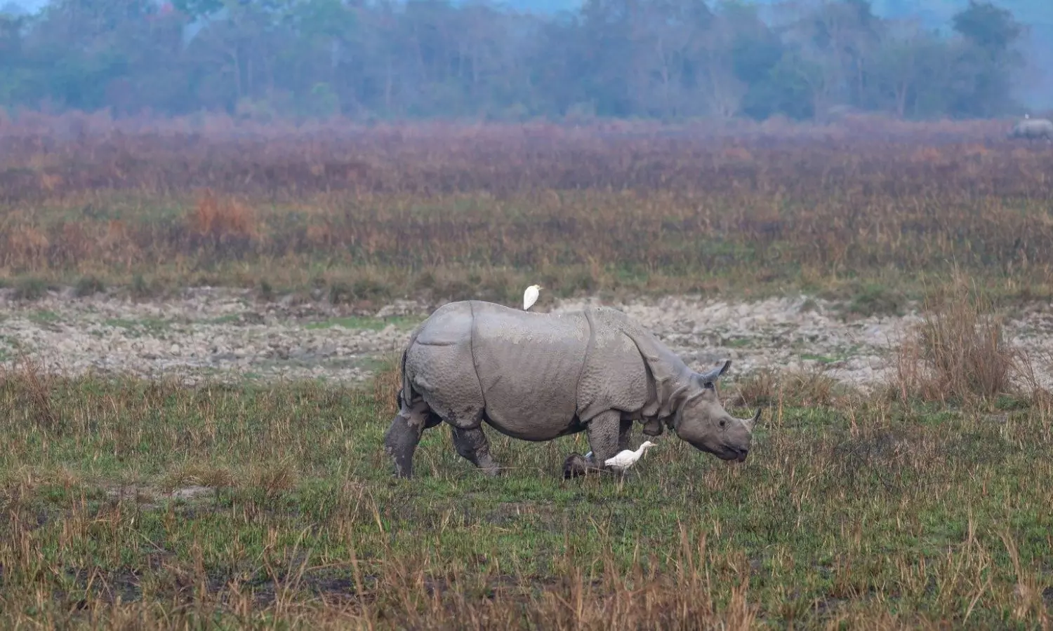 According to the census in 2022, there are over 2600 one-horned rhinos in the park. Apart from the one horned rhinos, there is a substantial population of animals like Swamp Deer, Hog Deer, Water Buffalo, and Elephant. Also a tiger reserve, Kaziranga National Park also has 104 Royal Bengal Tigers according to a census carried out in 2017.