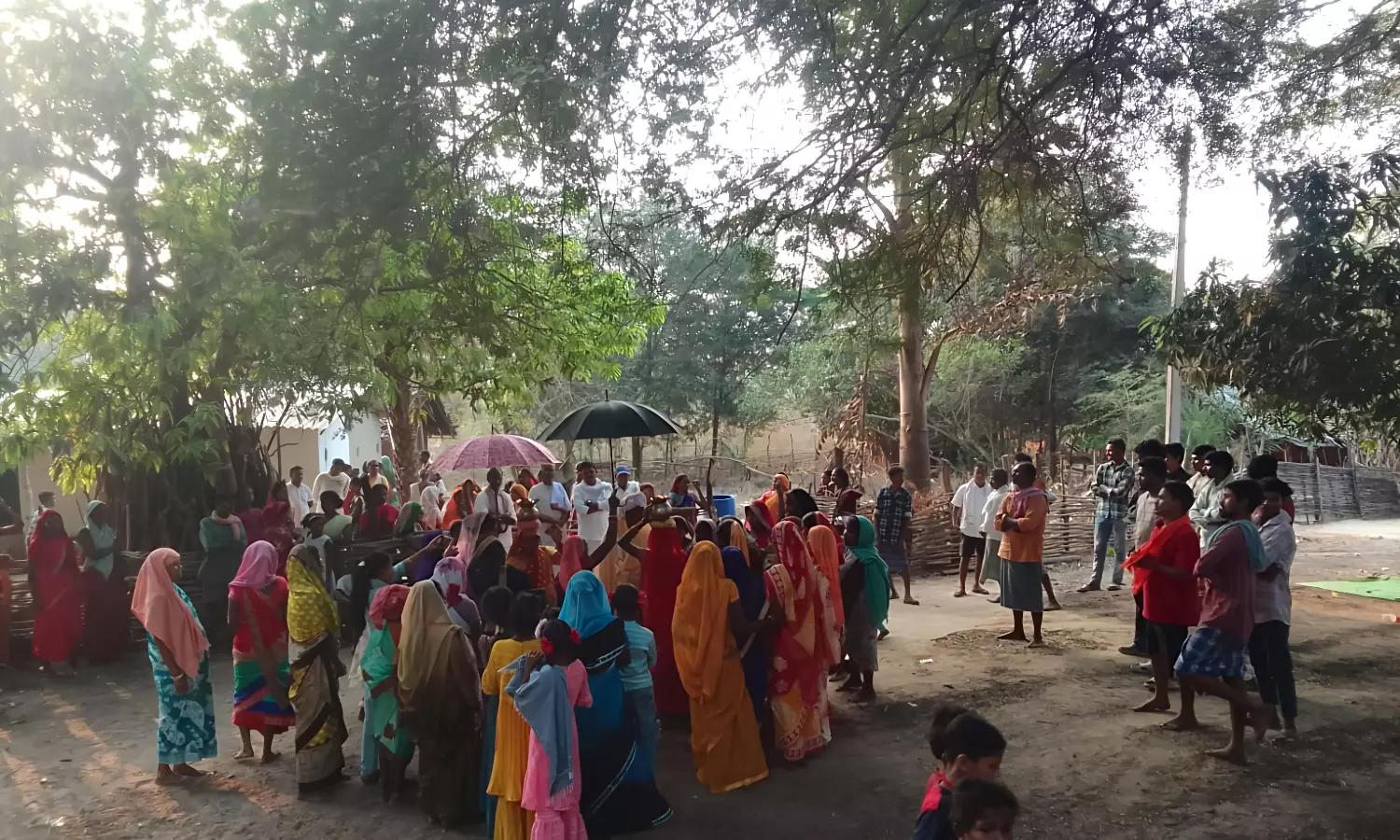 The tribal village greeted the groom and his party, hailing from the village of Gongpal in the district, with traditional tribal music and dance and rituals.