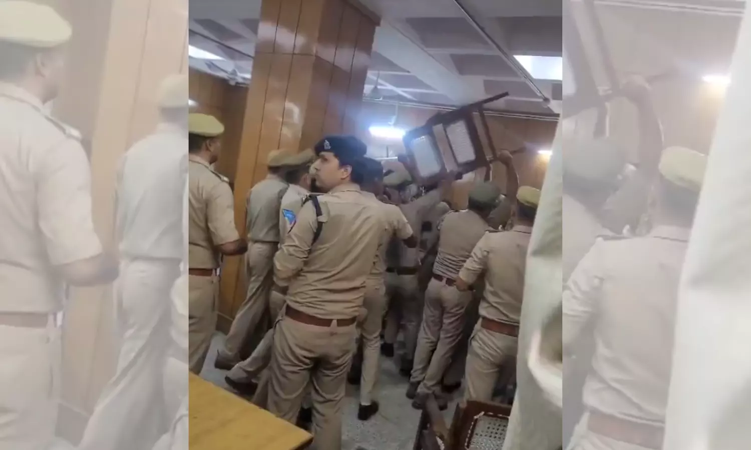 Ghaziabad: Lawyers and baton-wielding police personnel come to blows in a courtroom in Ghaziabad on Tuesday.It was not immediately clear what led to the altercation at the District and Sessions Court complex in the Raj Nagar area here and there were no immediate reports of any serious injuries.